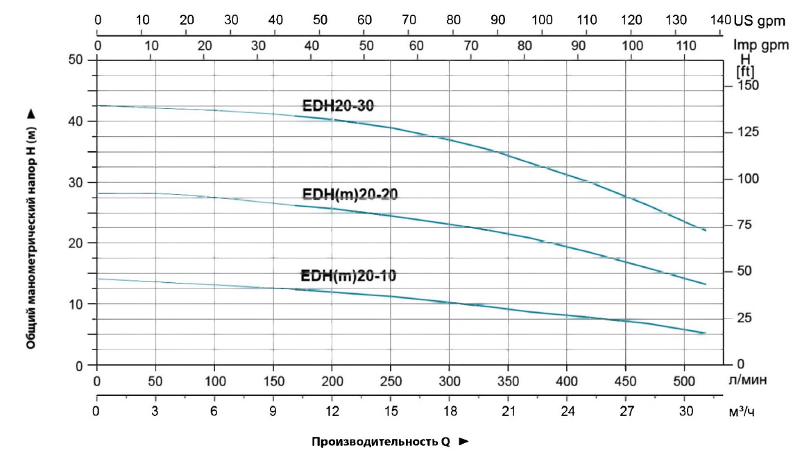 • Номинальный напор 22 метров водяного столба.
